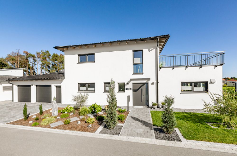 Baufamilie H. hat sich für eine großzügige Stadtvilla mit Walmdach entschieden.