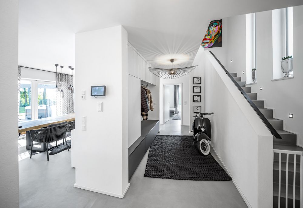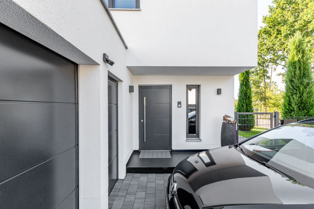 Auch für diese Baufamilie ging der Traum vom Eigenheim in Erfüllung. Sie hat sich für ein modernes Einfamilienhaus mit einfachem Pultdach entschieden. Charakteristisch ist hier die einseitig geneigte Dachfläche.